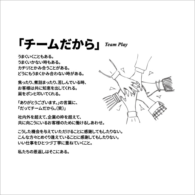 設立時から現在を迎えるまで、仕事をする上で忘れてはならないこと・大切にしたい思いなどを綴っています。